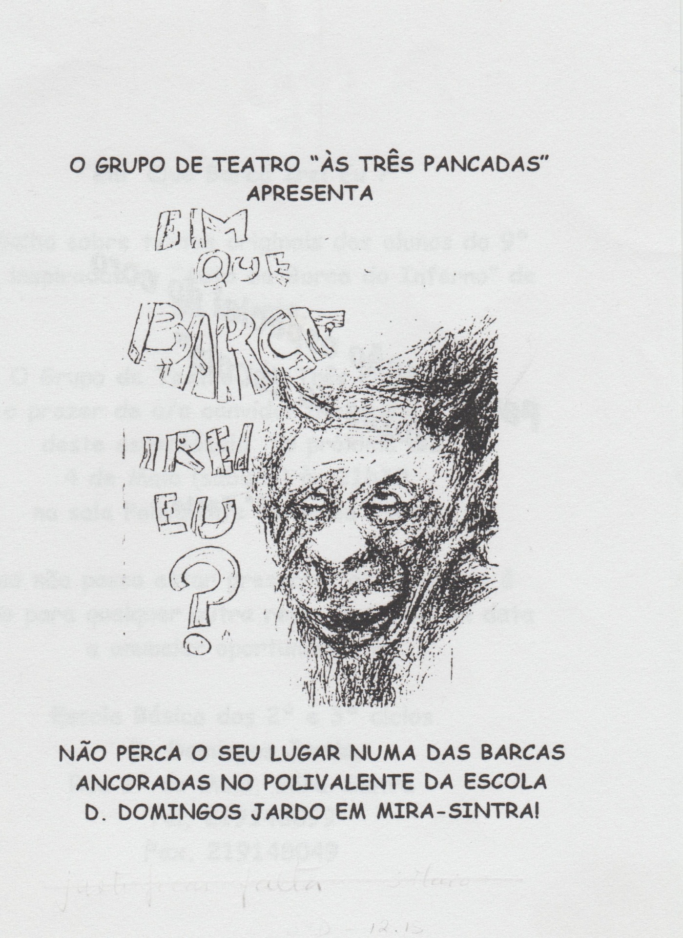 Texto coletivo de alunos do 9º Ano e do Grupo de Teatro da Escola D.D. Jardo - 2006/2007, a partir do imaginário do «Auto da Barca» de Gil Vicente e de cenas contemporâneas.