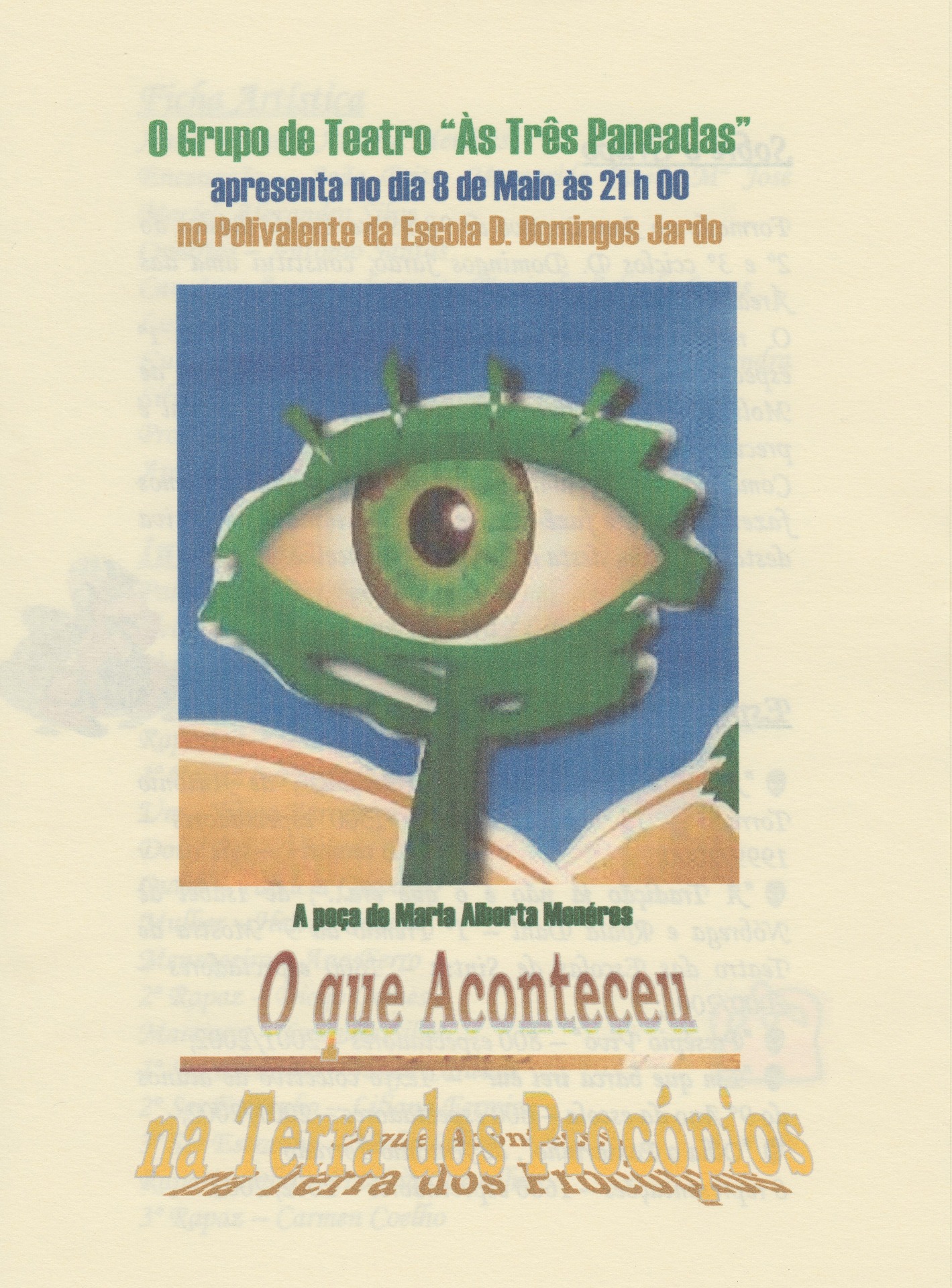 - até 2 abril - produção do espetáculo (cartaz, convites para a estreia, programa)